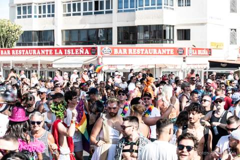 Entrada la noche, la fiesta se trasladó al Centro Comercial Yumbo, convertido en el epicentro del Maspalomas Pride que acogió a más de 50.000 personas con las actuaciones de Fruela y la cantante Soraya Naoyín, además de la música seleccionada por varios Djs que convirtieron el escenario del Yumbo en una gran pista de baile hasta la madrugada.