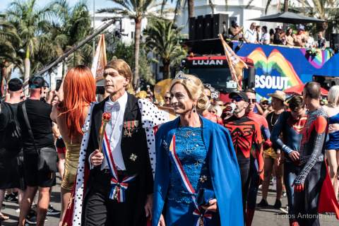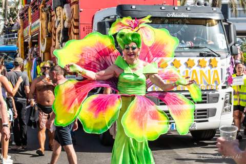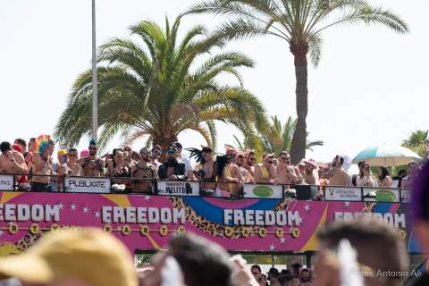 Más de 90.00 personas participaron en el desfile de las 31 carrozas del Maspalomas Pride by Freedom, según datos de la organización y de los Cuerpos de Seguridad del Estado, que llenó de música, baile y diversión las principales avenidas de Playa del Inglés que se convirtieron en una multitudinaria fiesta para reclamar la libertad, la igualdad y el respeto hacia todas las identidades del colectivo LGTBIQ+.