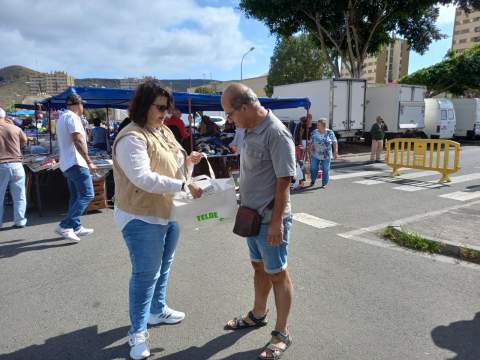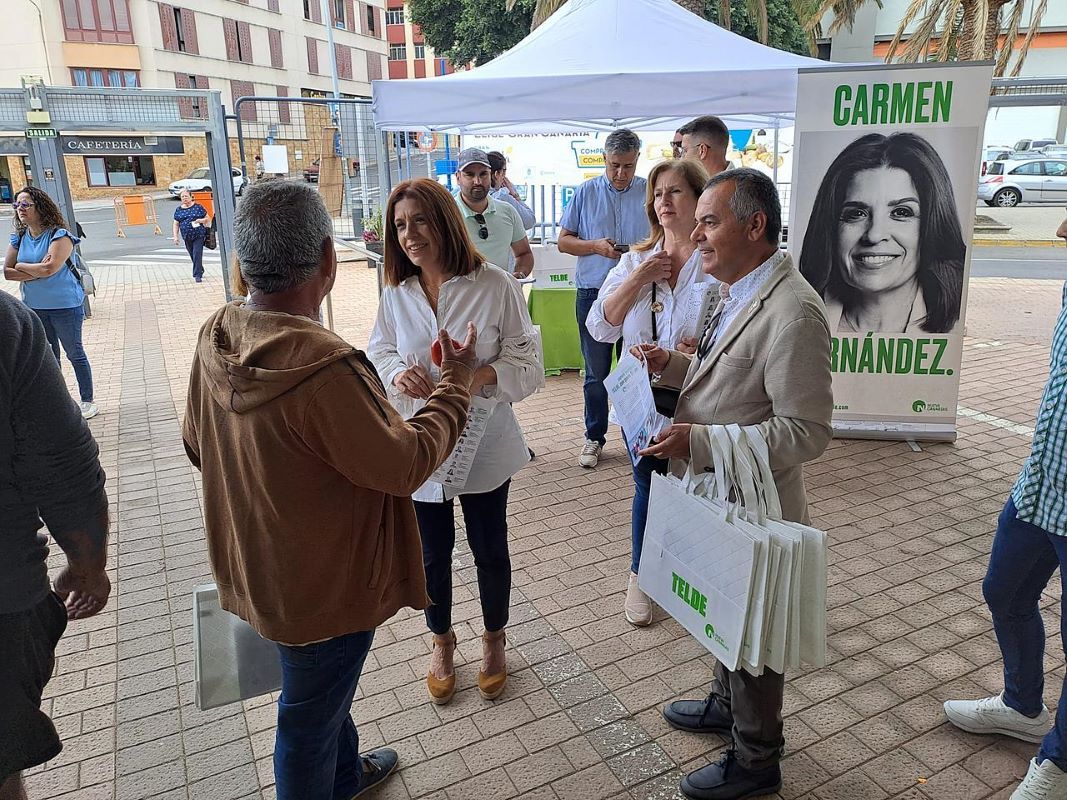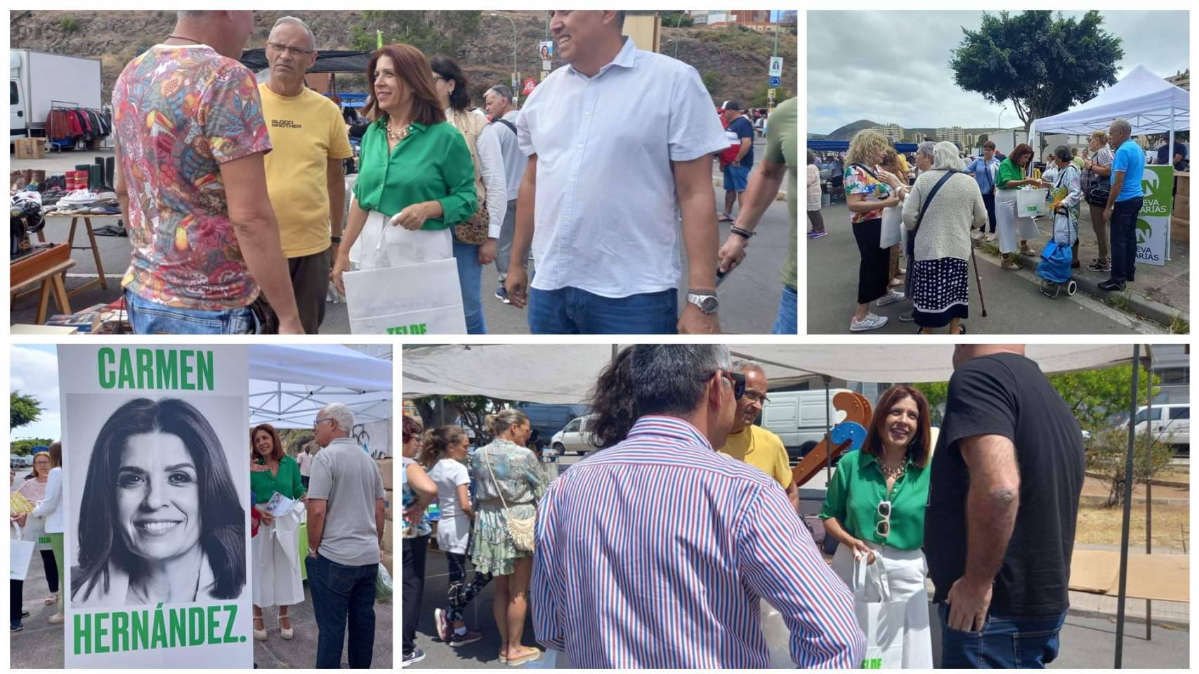 La candidata a la reelección como alcaldesa de Telde por Nueva Canarias, Carmen Hernández, se trasladó este domingo al Mercadillo de Jinámar junto a varias de las personas que la acompañan en su plancha electoral para compartir con la ciudadanía el programa con las propuestas canaristas.