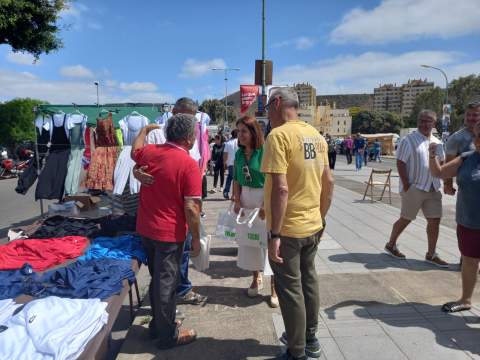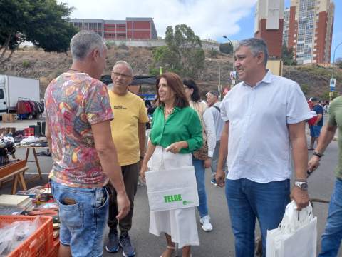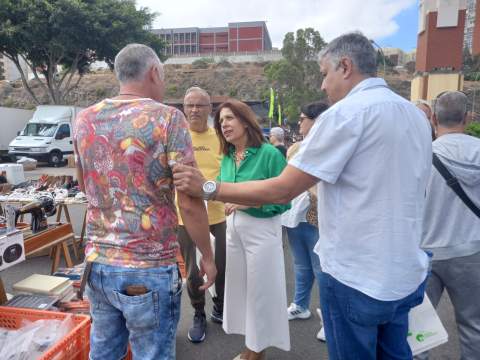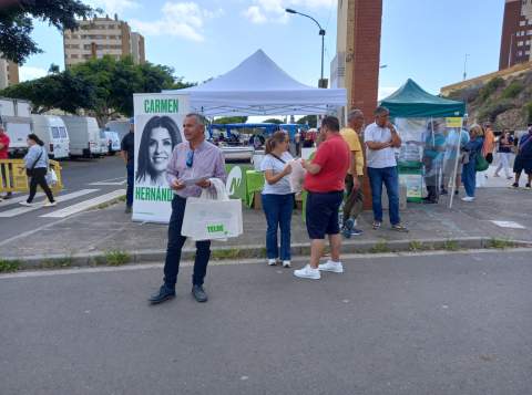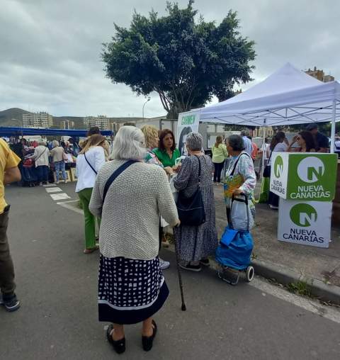 Carmen Hernández aprovechó la ocasión para intercambiar impresiones con los puesteros y con decenas de las personas que acudieron durante la mañana a este espacio comercial del municipio, con quienes repasó algunos de los logros de estos últimos años y aquellos retos que Nueva Canarias se compromete a afrontar en el próximo mandato para seguir consolidando el avance de la ciudad.