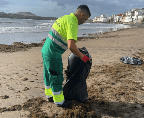 En esta ocasión, el dispositivo de la UTE formada por Valoriza Medioambiente y Santana Cazorla Servicios estuvo conformada por cuatro personas que estuvieron apoyadas por un vehículo de caja abierta que permitió optimizar las tareas para retirar las algas.