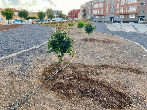 Según ha podido saber TA, el Servicio de Parques y Jardines, además de la instalación del riego por goteo y la aplicación de varios tipos de grava, ha colocado en este espacio unas 340 plantas entre árboles, arbustos y, sobre todo especies canarias, como siemprevivas y botoneras.