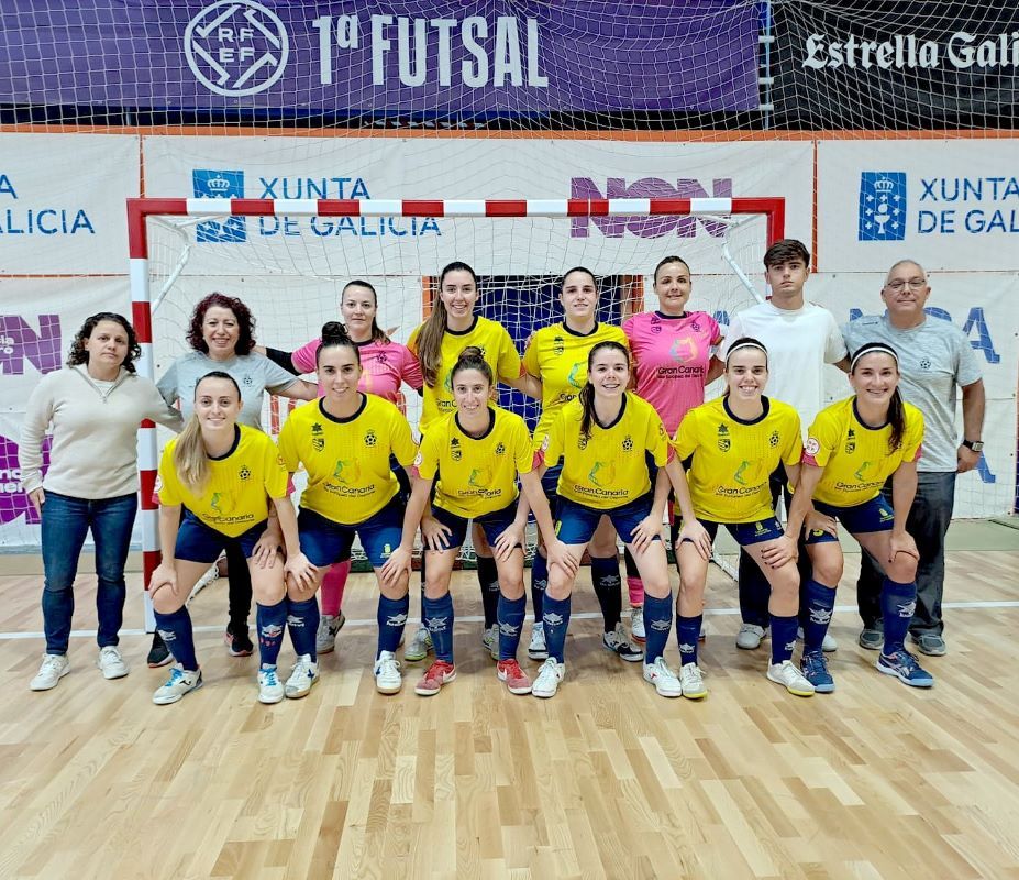 Gema, Virginia y Marta Escribano fueron las goleadoras del conjunto amarillo en Galicia, ante un rival que al descanso dominaba por 4-0, y que con esta victoria escala hasta el segundo puesto, aprovechando el empate del Poio Pescamar con el Marín Futsal (2-2).