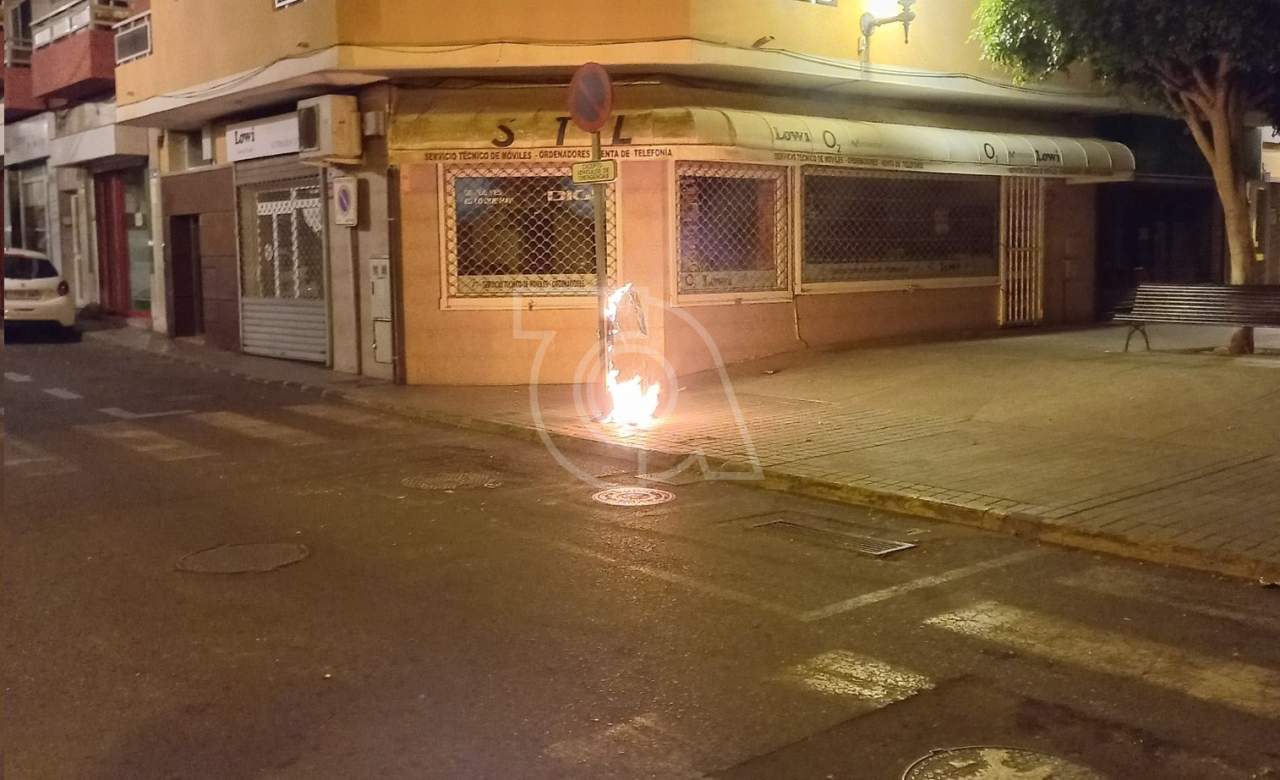 Según reportan vecinos de la urbanización Juan Mayor, a la quema de una papelera en la calle de Alonso Quesada, esquina con el paseo de Saulo Torón, hecho del que dio cuenta esta mañana TELDEACTUALIDAD, hay que sumar la ignición de un contenedor emplazado en la vía comercial que lleva el nombre del poeta teldense Fernando González.