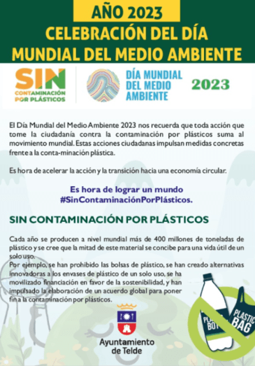 En el municipio, la celebración que este año tiene como lema #SinContaminaciónPorPlásticos arranca el próximo lunes con la entrega de premios del concurso escolar que tendrá lugar a las 10.30 horas en el edificio de El Cubillo, explica el concejal del Medioambiente, Álvaro Monzón.
