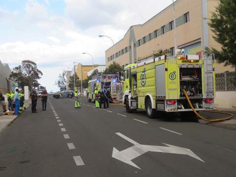 También un vehículo patrulla de la Policía Local y dos de la Policía Nacional y, de manera preventiva, una ambulancia del Servicio de Urgencias Canario (SUC). No hubo que lamentar daños personales porque la industria estaba cerrada en el momento que se originó el siniestro.
