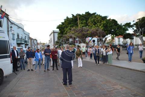 Allí delante de su inmueble finalizaría minutos antes de las 21.00 horas este evento cultural pilotado por el  historiador y cronista oficial de la ciudad, Antonio María González, después de haber partido poco después de las 20.00 horas desde la plaza  colindante por el norte con la vetusta ermita de San Pedro Mártir.