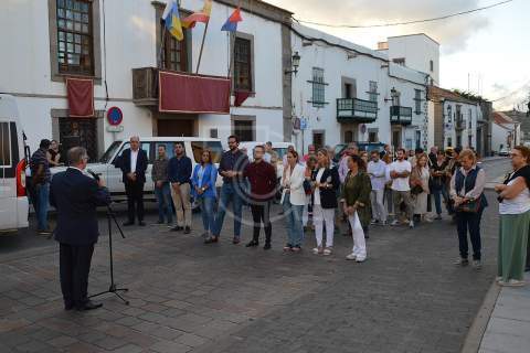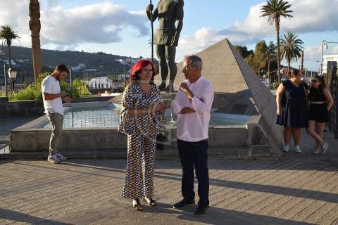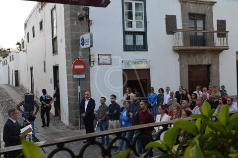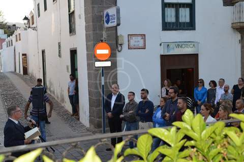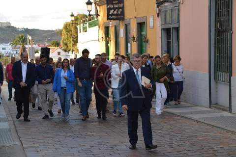 Música y poesía se fusionaron durante el paseo de una hora de duración en el que González recitó textos de poetas como Fernando González, Montiano Placeres, Pino Blanco Jardín, Cipriano Acosta y Saulo Torón y la agrupación musical bajo la batuta de José Martel ejecutó el pasodobles Islas Canarias y el Himno al Santo Cristo de Telde en las paradas del corto itinerario que discurrió por la calle principal del conjunto monumental de la ciudad con la asistencia de unas 75 persondas y presidido por el nuevo alcalde de la ciudad, Juan Antonio Peña, acompañado por miembros del Gobierno y de la oposición.