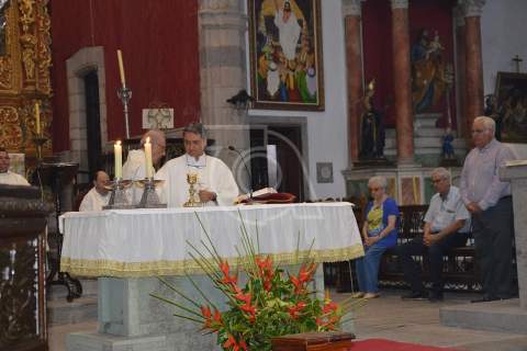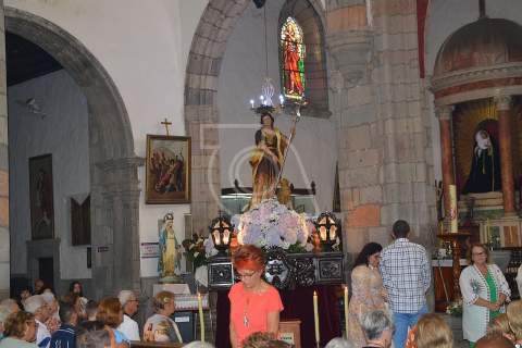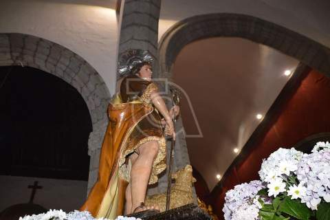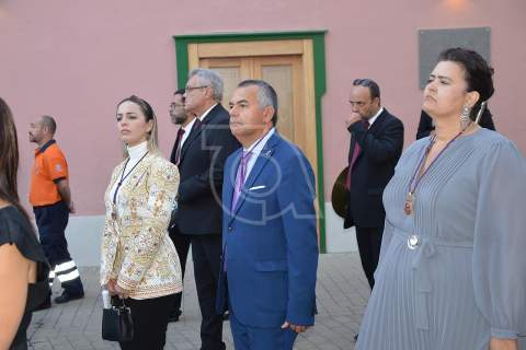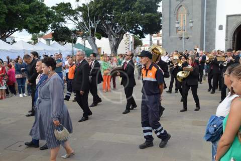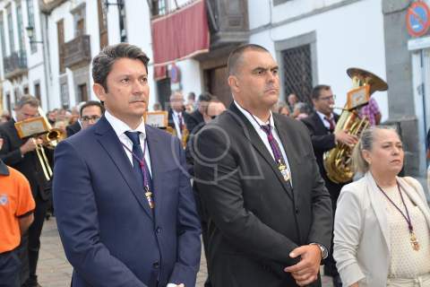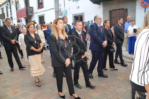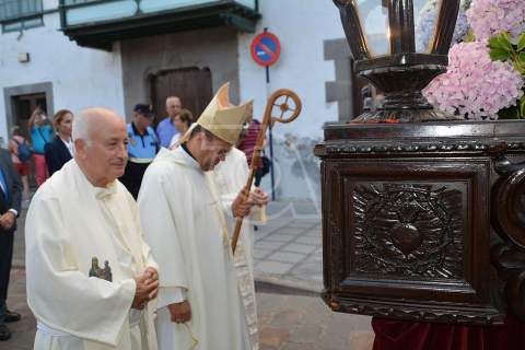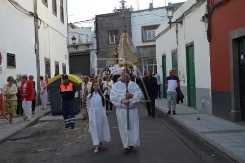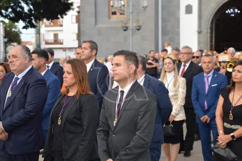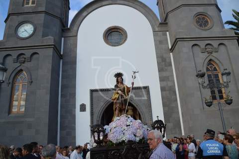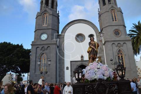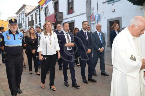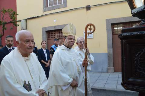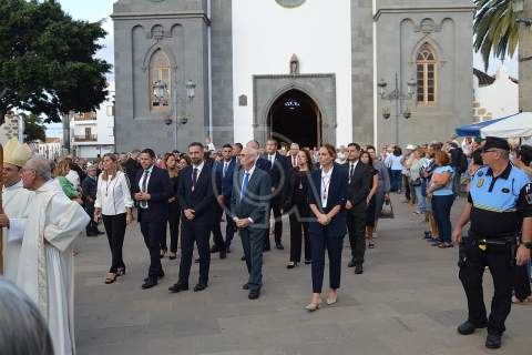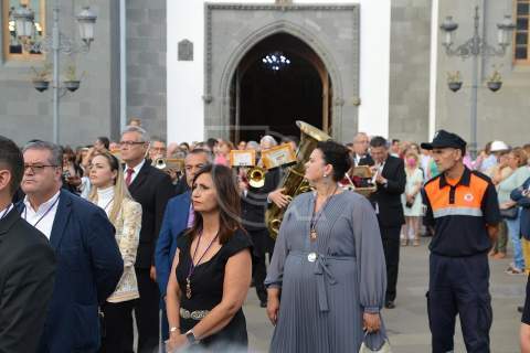 En la segunda procesión religiosa tras el parón de casi dos años y medio motivado por la pandemia, la venerada imagen asomaba por el pórtico principal de la Basílica de Telde pasadas las 20.15 horas, tras finalizar la solemne misa oficiada por el obispo auxiliar de la Diócesis  de Canarias, Cristóbal Déniz, y el sacerdote y párroco José María Cabrera. La eucaristía estuvo amenizada por Mari Carmen Hernández y su coro.