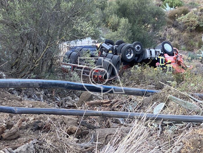 Un camión se ha salido de la vía en la mañana de este lunes, sobre las 7.30 horas, en la carretera de García Ruiz, en la zona teldense de El Palmital, y se ha precipitado por una ladera unos 20 metros. El conductor, un hombre de 47 años, presenta policontusiones de carácter moderado, salvo complicaciones, y ha sido trasladado en una ambulancia medicalizada del SUC al Hospital Universitario Insular de Gran Canaria.