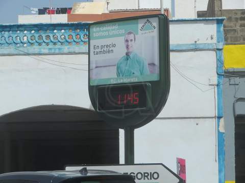 La canícula se está dejando sentir sobre todo en zonas del casco y en las medianías del municipio. A media mañana, a eso de las 11.00 horas, algunos termómetros alcanzaban los 40º C y otros, más resguardados del sol al estar en zona de sombra, los 30º C.