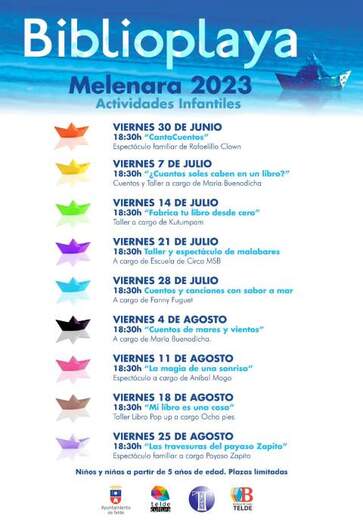 El Ayuntamiento de Telde inaugura este viernes, 30 de junio, la Biblioplaya de Melenara, una iniciativa de fomento de la lectura que en esta ocasión celebra su 13º edición y que en 2022 fue galardonada con el Premio Rana otorgado por el Cabildo Insular.