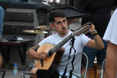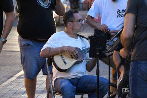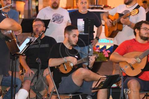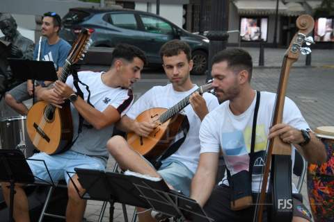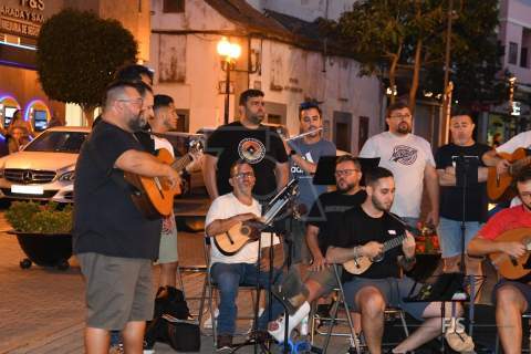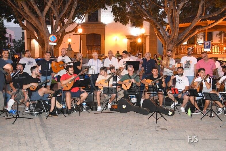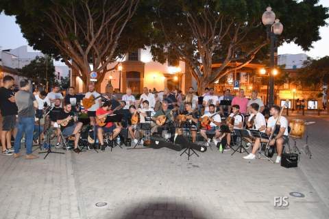 Tal y como había anunciado TELDEACTUALIDAD, los componentes del grupo teldense de música popular Araguaney llevaron a cabo este martes un ensayo público en la zona comercial de Los Llanos, junto a la plaza y a la escultura del limpiabotas, a partir de las 21.00 horas