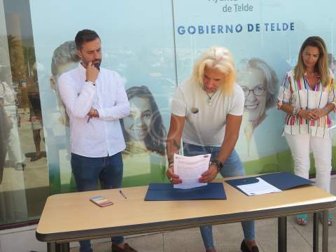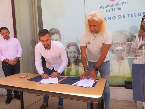 La sede principal del Ayuntamiento de Telde, el edificio de El Cubillo, fue por primera vez el marco escogido por el Gobierno local para escenificar su apoyo al colectivo LGTBIQ+. El alcalde Juan Antonio Peña y Daniel Alemán, presidente de Marikas Rurales, firmaron el manifiesto que, acto seguido, leyó el secretario de esta asociación, Eduardo Manzano. Un texto que cuyo eslogan reza "no queremos tolerancia, queremos aceptación".