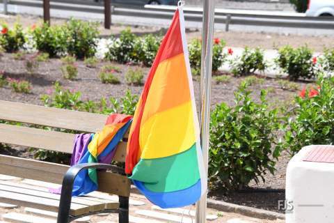El acto concluyó con el izado de la bandera arcoíris en un mástil ubicado en la fachada del inmueble.