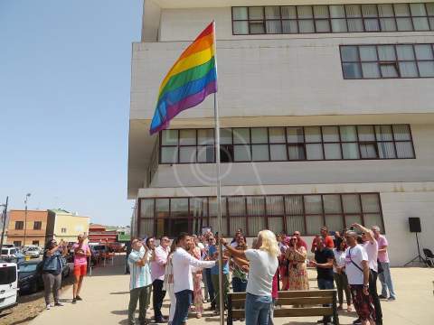 Izado por primera vez de la bandea arcoiris en El Cubillo