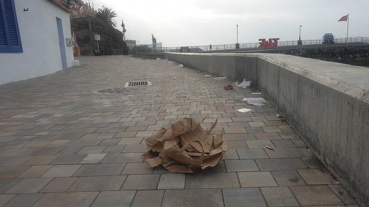 Suciedad en el paseo costero de Melenara
