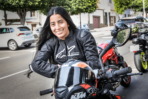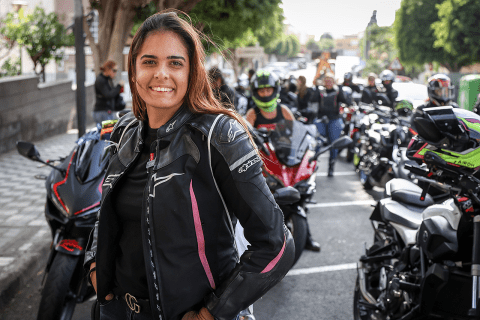 “Somos todas canarias, por ahora un grupo de 110 chicas y de todas las islas”, ha celebrado la impulsora de la iniciativa, “hay chicas de Tenerife, Fuerteventura, Lanzarote, La Palma y ya estamos intentando traer moteras de La Gomera”, ha señalado.