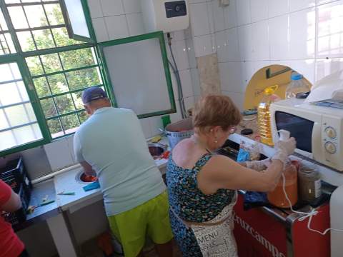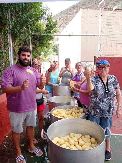 Tras el pregón este viernes a cargo de seis jóvenes del barrio, Antonio José, Azahara, Brian, Paola, Rocío y Scherezade, Hornos del Rey degustó un apetitoso sancocho canario elaborado por vecinos, al que siguió una animada verbena del solajero amenizada por Yeray Socorro y la celebración de la Fiesta de la Cal tras varios años de no celebrarse debido a la pandemia.