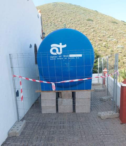 El barrio de Lomo Blanco y la Asociación Vecinal La Somada, que preside Pepe Montesdeoca, muestran su desacuerdo con la Concejalía de Aguas de Telde y con la empresa de mantenimiento del depósito de agua del abasto en Lomo Blanco por haber depositado una cuba en en el patio de la ermita.