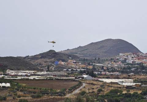 Según testigos presenciales, los medios aéreos, los dos helicópteros de los que dispone la Consejería de Medio Ambiente, ya han comenzado a realizar descargas de agua sobre la zona, unas maniobras con las que confían en controlar las llamas.