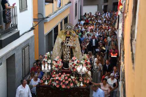 La imagen marinera efectuó un recorrido por las calles del enclave comercial de Los Llanos, siguiendo el periplo que era habitual por las vías de Plaza de San Gregorio,  Juan Diego de la Fuente, Francisco González Díaz, Gago Goutihno, María Encarnación Navarro y Rivero Bethencourt, tras vuelta a la Plaza de San Gregorio, con el acompañamiento de la Banda Municipal, autoridades encabezadas por el alcalde Peña, feligreses y un grupo de mujeres ataviadas con mantillas y un grupo de niños vestidos de Primera Comunión.