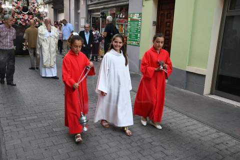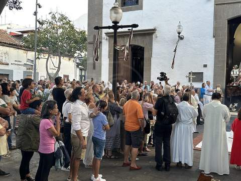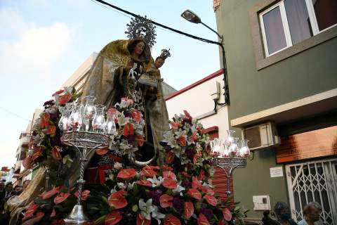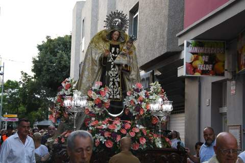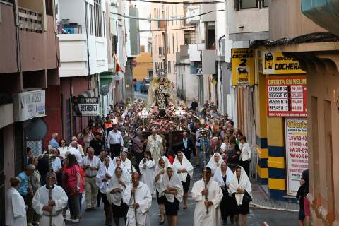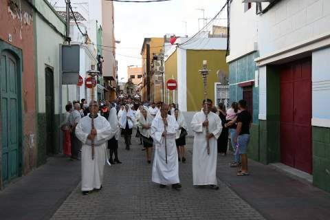 El desfile religioso por las calles de este importante emporio comercial de la ciudad se puso en marcha tras la misa de las 19.00 horas, concelebrada por los sacerdotes del Arciprestazgo de Telde y en la que predicó el párroco Luis Marrero.