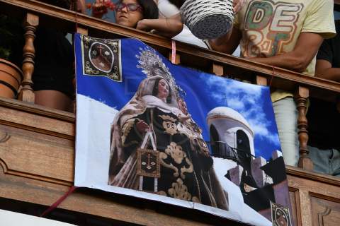 Durante el trayecto, la cantante Mari Cordero le cantó en la calle Francisco González una sentida malagueña a la Virgen, que recibió también desde los balcones una lluvia de pétalos de flores lanzados desde los balcones.