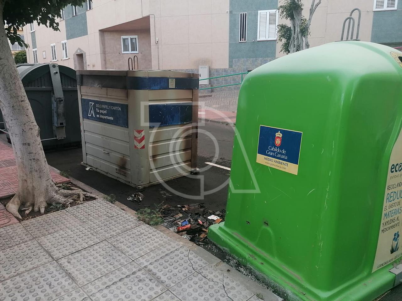 En la tarde de este lunes ha ardido un contenedor de cartón en la calle Antonio Bethencourt Massieu, vía que desemboca en Movimiento Ciudadano, junto al parque de San Gregorio, en el sector de La Barranquera.