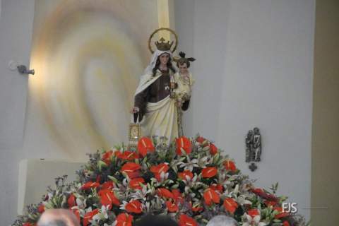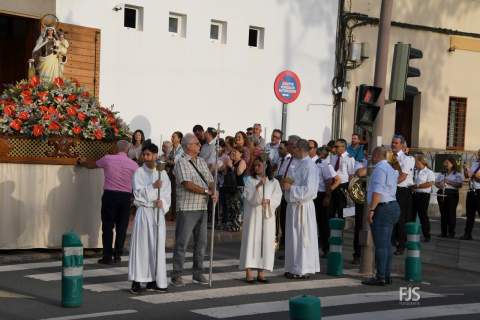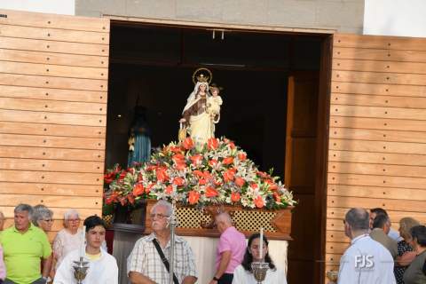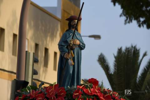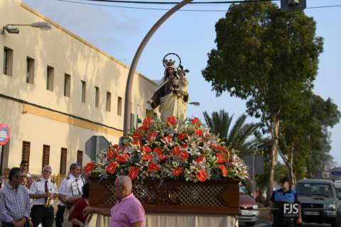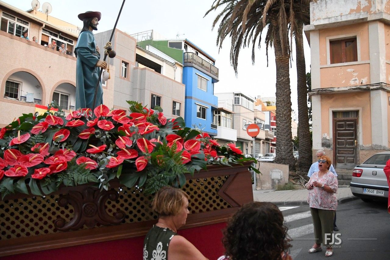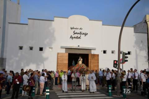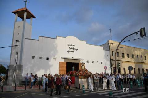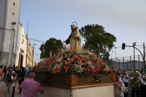 Fieles y autoridades municipales acompañaron este martes a la Virgen del Carmen y de Santiago Apóstol, patrono de Lomo Cementerio, en la procesión que recorrió con fervor las calles de este núcleo poblacional de Telde.