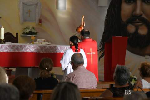 Este acto, que contó con la presencia de varios ediles del Gobierno y Oposición de Telde, se desarrolló después de la misa celebrada en la Iglesia de Santiago Apóstol a las 19.00 horas por el párroco Benjamín Ramírez.