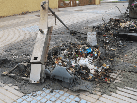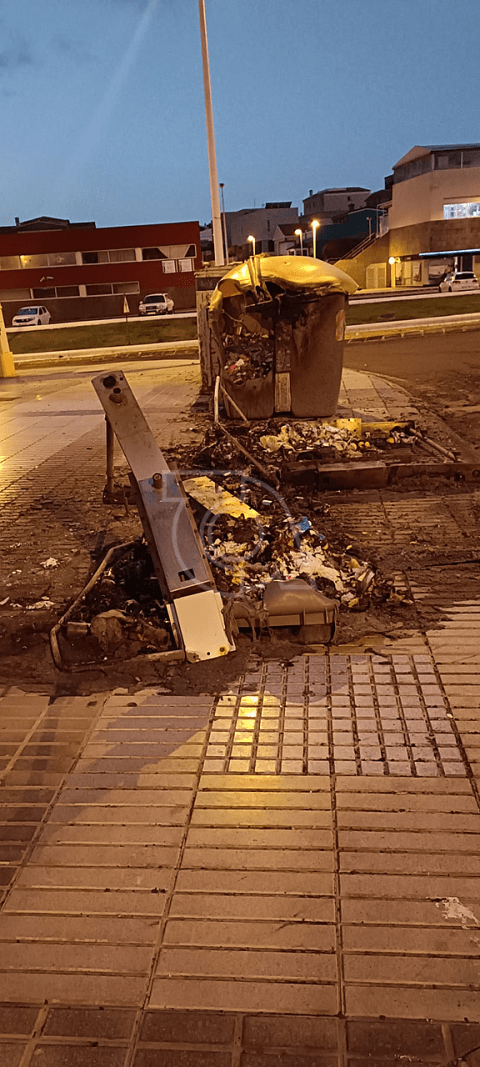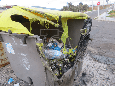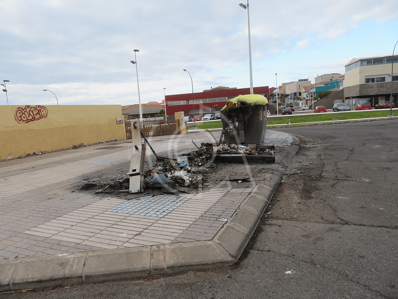 Varios contenedores de plástico destinados a la recogida de residuos orgánicos ardieron esta madrugada en La Garita, en las inmediaciones del colegio público, en la calle de Durero.