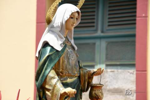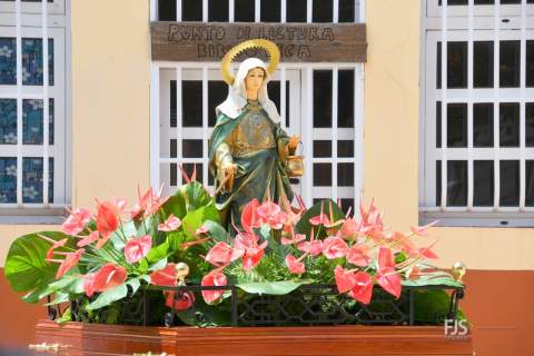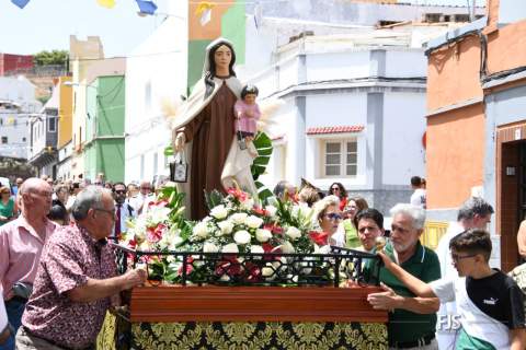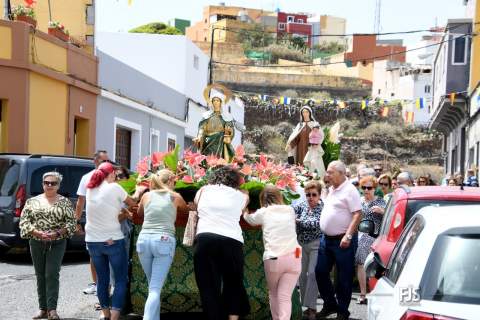 A partir de las 12.00 horas, en la plaza anexa al pequeño templo bajo la advocación de Santa Marta, se celebró la misa oficiada por el párroco Ricardo Marrero y, a su término, tuvo lugar la procesión de los tronos de la patrona y de la Virgen del Carmen por las calles del barrio, con el acompañamiento de fieles, Banda Municipal de Música y autoridades públicas, entre las que se encontraban los ediles Juan Martel, Adela Álvarez, Miguel Rodríguez, Cristhian Santana y Álvaro Monzón.
