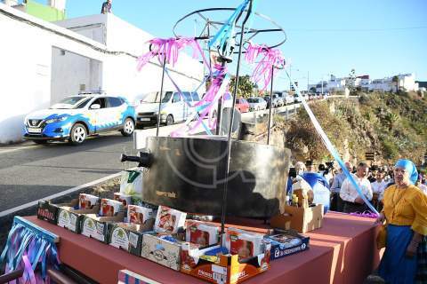 Los alimentos ofrendados por los romeros a la Parroquia de Las Nieves serán repartidos entre las familias con recursos limitados de la zona.