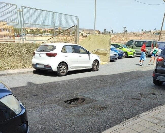 Profundo bache junto al edificio de Los Marinos de Melenara