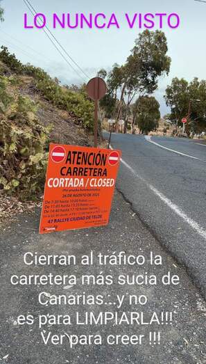 Un cartel anunciando el cierre de la carretera por el Rally de Telde causa indignación entre los vecinos que transitan a diario por la GC-80 y la GC-810. Aseguran que esta vía lleva dos años sin que sus márgenes, llenos de basura, sean objeto de un mínimo de atención ni por parte del Cabildo Insular ni por parte el Ayuntamiento.