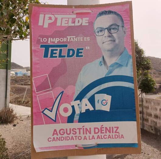 Sostienen que hay varios carteles en los postes de luz, del mismo partido (Izquierda Progresista de Telde) y del mismo candidato, Agustín Déniz. Ironizan con el slogan de la formación política y afirman que “lo importante es quitar los carteles”.