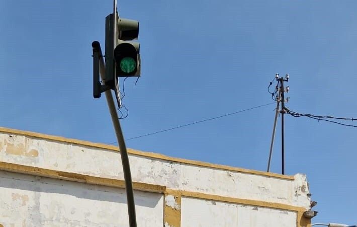 Vecinos de Telde se preguntan qué función tiene un semáforo en la Avenida del Cabildo para regular el paso de peatones, que está a 4 metros de altura y girado 90º grados al sentido de circulación. ¿Cómo saben los coches que tienen que parar? se cuestionan.