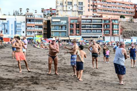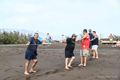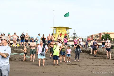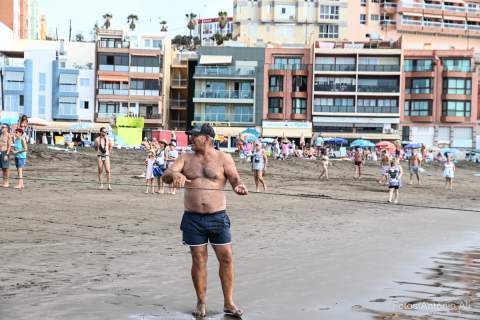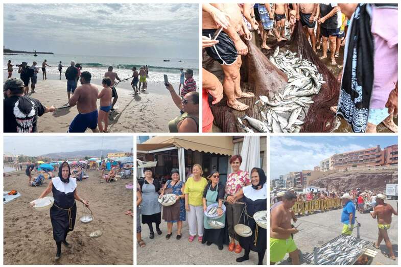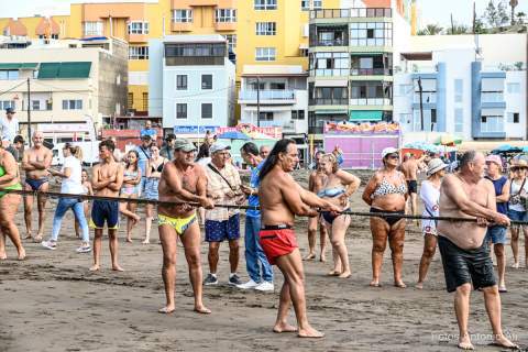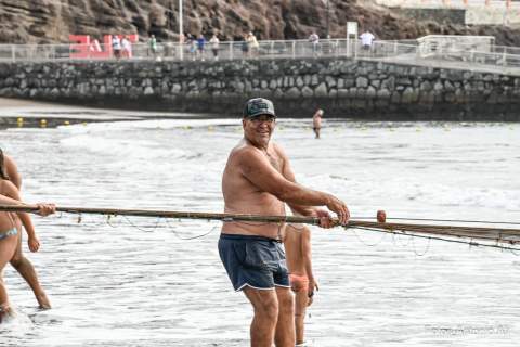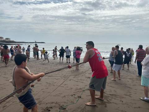 La calufa marcó este domingo la recreación del arte tradicional de pesca del chinchorro en la playa de Melenara, un acto propio de las fiestas patronales de este barrio de pescadores en honor del Santo Cura de Ars y de la Virgen del Carmen.