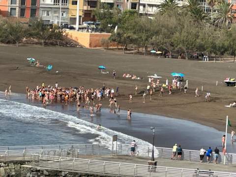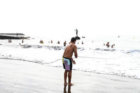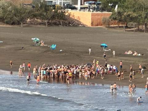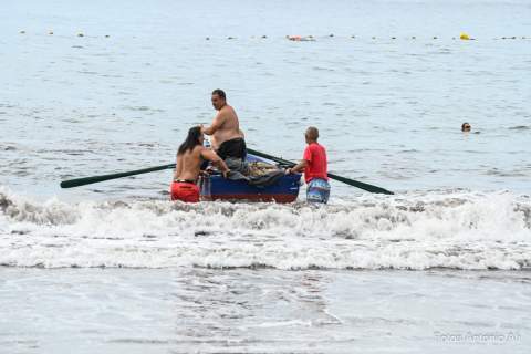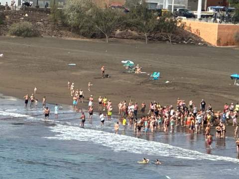 Un nutrido grupo de veraneantes y bañistas se congregaron junto a los marinos que echaron las redes poco después de las 10 de la mañana.