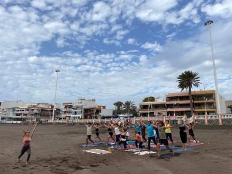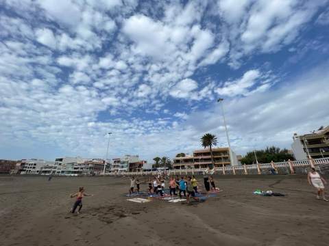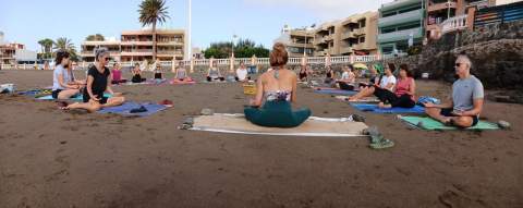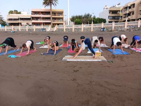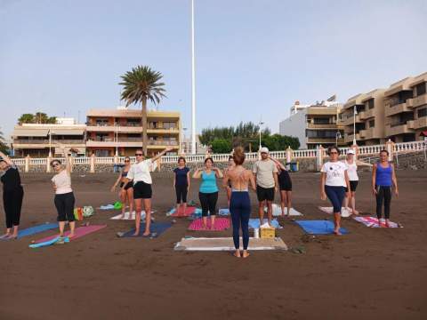 Salinetas clausuró en la mañana de este domingo el ciclo de seis sesiones de yoaga impartido por Isabel Florido Mayor, de Baransu Studio.
