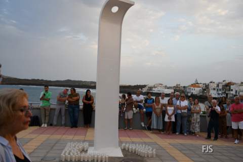 Para culminar el tributo se encendieron 154 velas en honor a cada una de las víctimas bajo el monolito situado en la plaza costera.