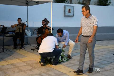 El evento comenzó con una pieza musical a cargo de un quinteto de la Orquesta Comunitaria insular y seguidamente tuvo lugar una ofrenda floral y la lectura de dos poemas por parte de los seres queridos de los afectados.