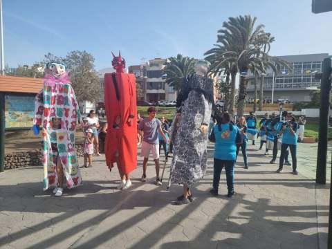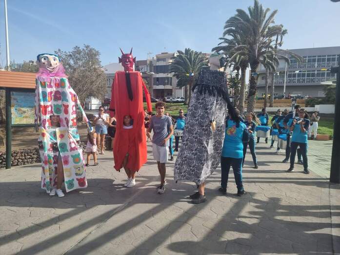 Melenara se ha llenado en la tarde de este miércoles de ritmo y color con una batucada que partió desde el restaurante escuela y recorrió el paseo marítimo hasta llegar al escenario de las fiestas patronales que este núcleo costero celebra desde el pasado viernes.
