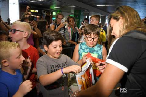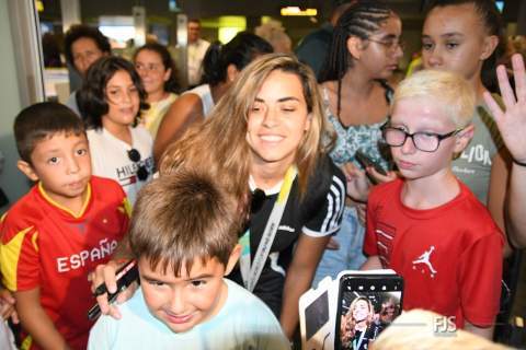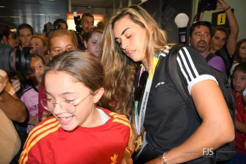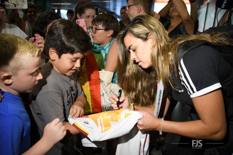 La campeona del mundo con la Selección Española ha arribado esta tarde al Aeropuerto de Gran Canaria, donde le esperaban decenas de personas