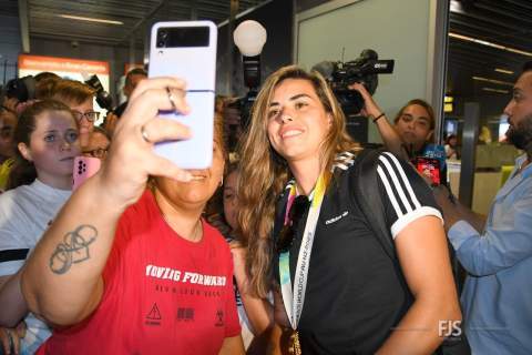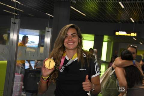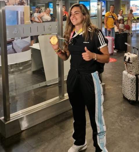 El Ayuntamiento de Telde ha colgado en su Twitter la imagen de la joven con la medalla dándole la bienvenida: “Nuestra estrella ya está en casa. ¡Bienvenida, campeona!”