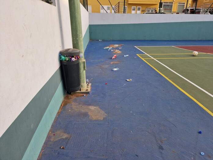 Vecinos del barrio de La Montañeta de El Calero denuncian el estado lamentable de suciedad que presenta la cancha de fútbol y los alrededores, por lo que piden al Ayuntamiento de Telde que adecente el recinto.