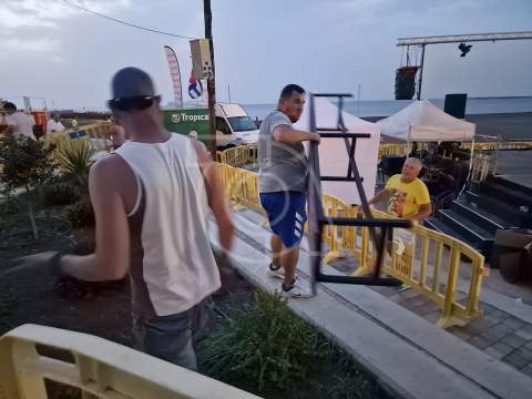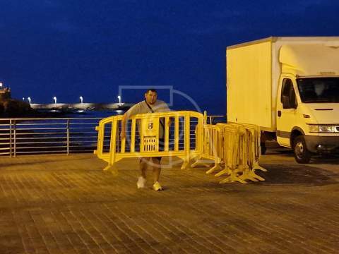 De madrugada aún comenzaron a montarse en el muelle las piezas que se utilizarán para los fuegos y miembros del colectivo vecinal Meclasa y empleados de la Concejalía de Festejos instalaron las vallas del perímetro de seguridad.