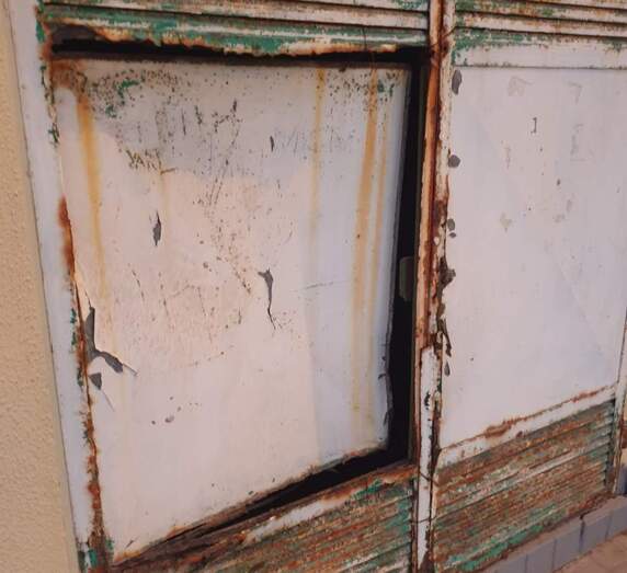 Vecinos de Hoya Pozuelo denuncian el mal estado de la puerta de contadores de luz en los pisos de este enclave, que al estar oxidada se queda abierta con el riesgo de que cualquier persona pueda tener acceso a ellos.