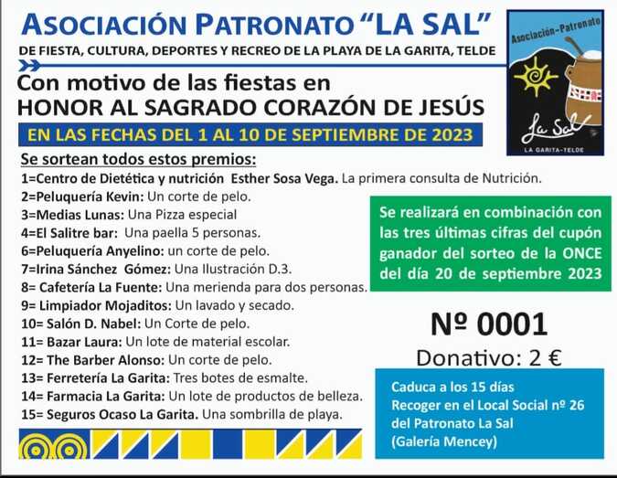 Los festejos, organizados por la Asociación Patronato La Sal que preside Julia Martel, se extenderán hasta el próximo 10 de septiembre.Este sábado, 2 de septiembre tendrá lugar la fiesta El Gariteque en la plaza (20.30 horas), y el día 3 se realizará una visita guiada por el arqueólogo Abel Galindo al yacimientos de Lomo Los Melones. La salida será desde la plaza y habrá dos pases, a las 9.00 y las 11.00 horas. Por la tarde habrá actuaciones infantiles (18.30 horas).